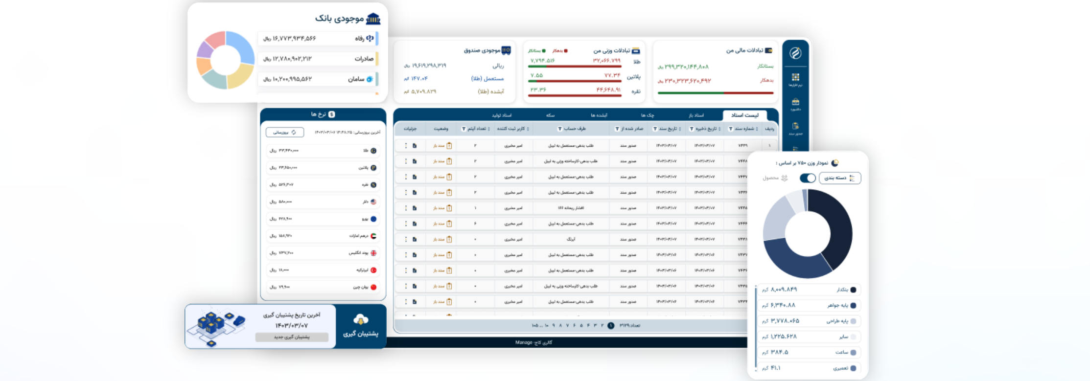 - تفکیک وزن طلا نو، طلای کهنه، طلای امانی و آبشده