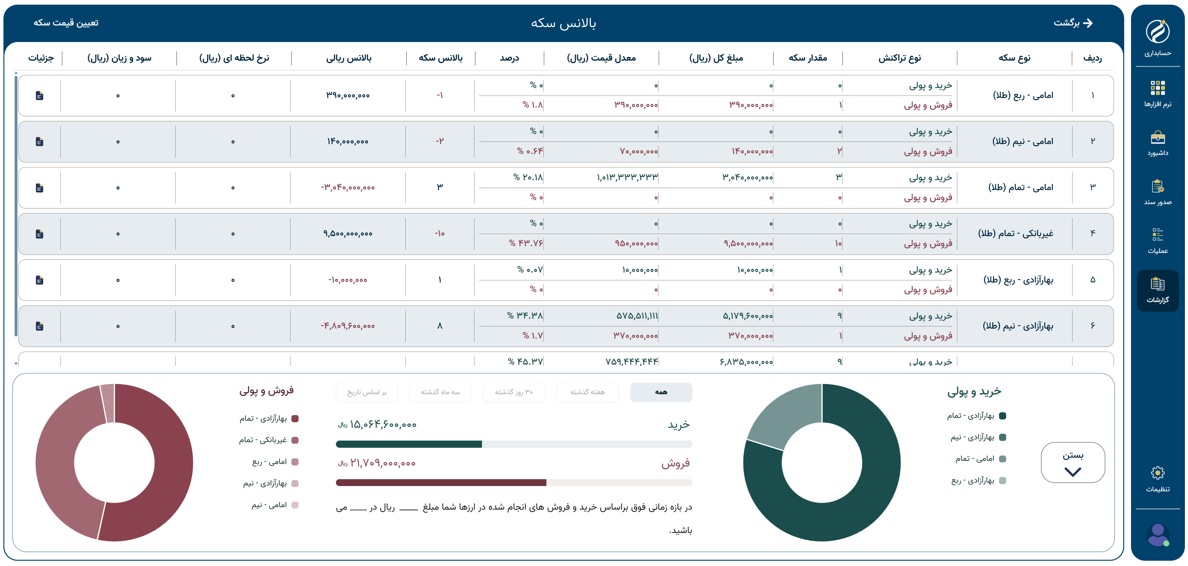 - گزارش دقیق موجودی و گردش سکه ارائه دهد